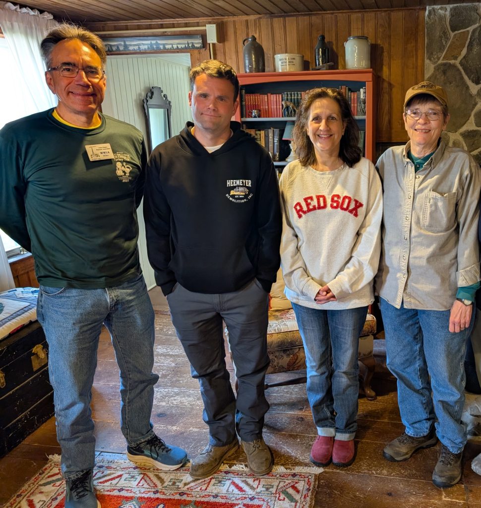 Brian, Don, John, Mike, and Frank helping a new member put John’s long wire up.