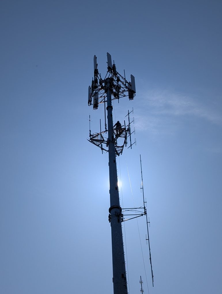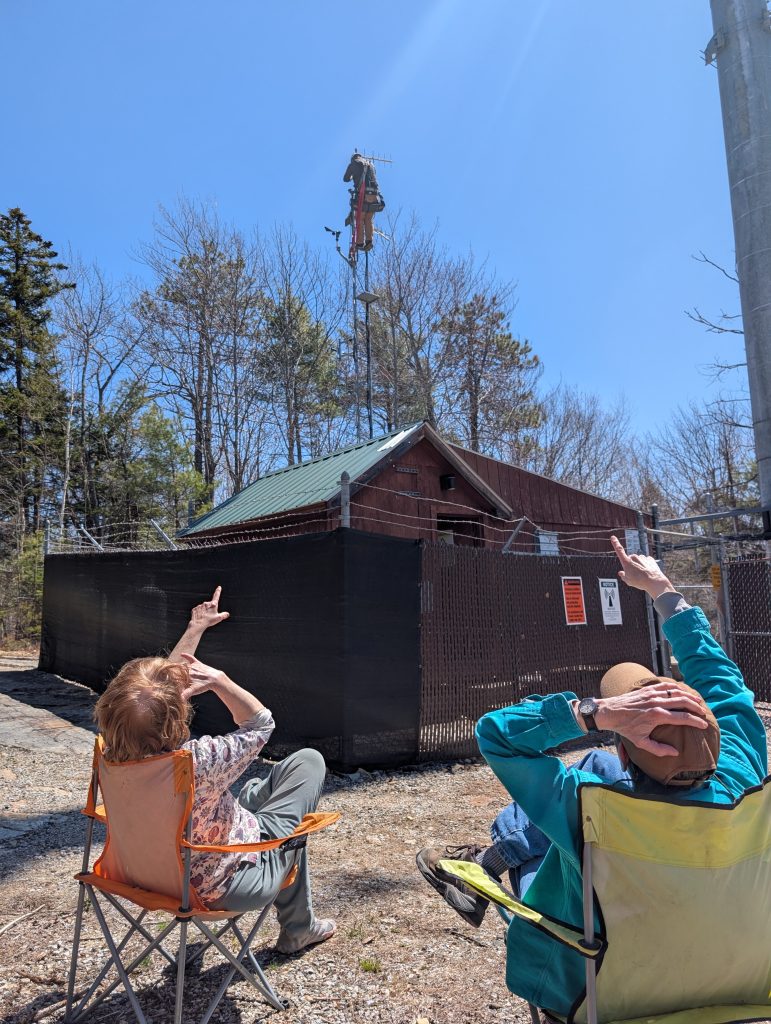 Mike WW1A, Tom W1LYA, and Frank W1WU {behind camera} putting up Tom’s attenna with new gun.