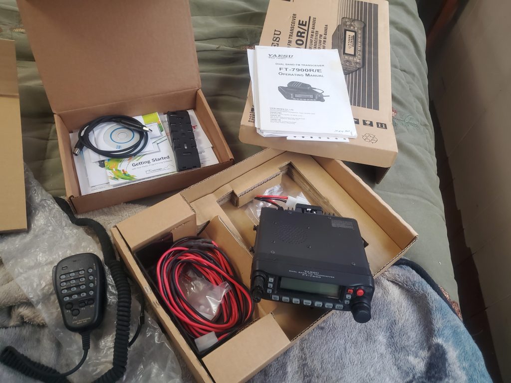 Have 2 ham radios both receive and transmit, in very good condition the first a yeast ft very good condition all hardware and wiring are there doesn’t appear to have been used too much comes with a remote head mount kit as well with the wiring, asking $125