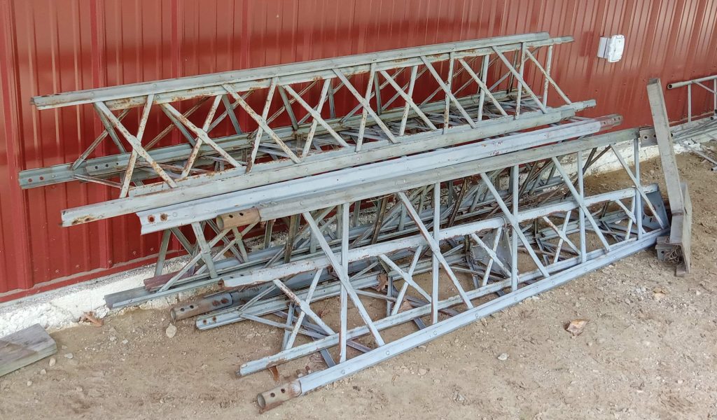 Wade DMX-44N tower; tilt-over base, Self Supporting, no guying needed.